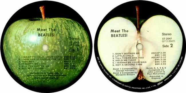 La imagen de Apple, una manzana verde de la variedad Granny Smith, sirvió como método de distinción en los singles y álbumes de la compañía, siendo impresa una imagen de la manzana entera en la cara A de los discos de vinilo y una manzana partida a la mitad en la cara B.